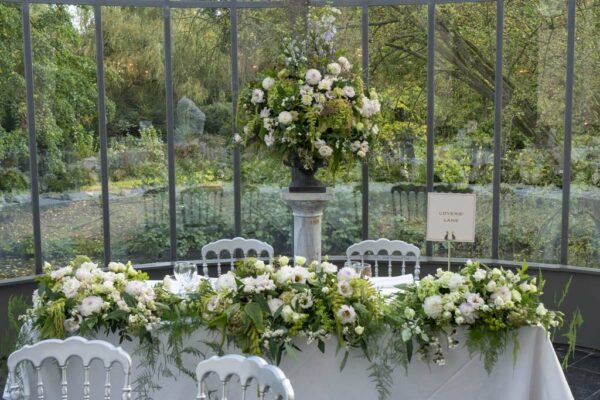 Passez commande assez tôt auprès du fleuriste qui réalisera l’arrangement floral de la cérémonie, de la réception et du bouquet de la mariée.